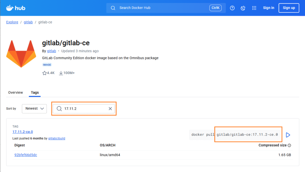 https://hub.docker.com/r/gitlab/gitlab-ce/tags